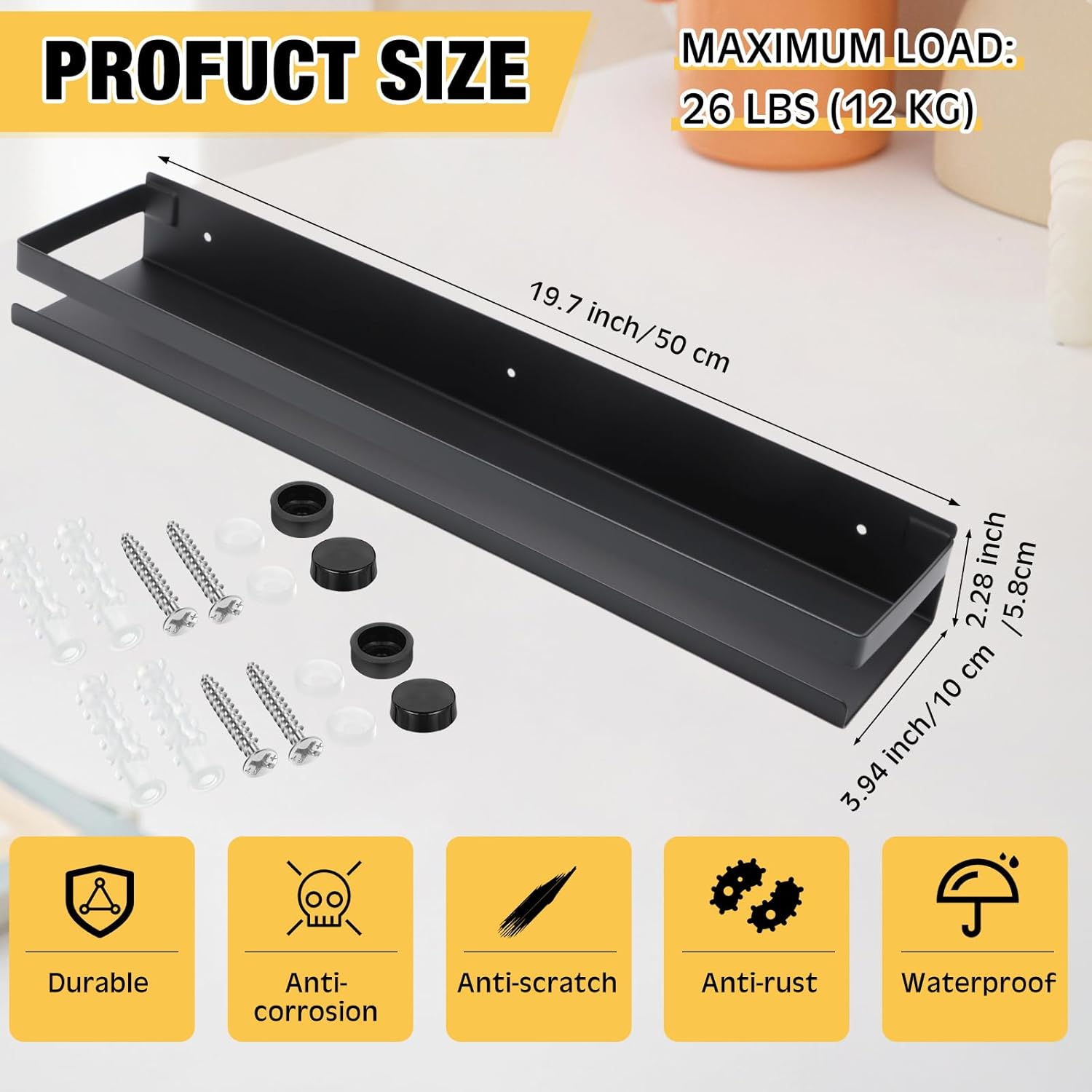 - Abundant to Choose: you will receive 2 pieces of floating shower shelves, with 4 screws, 4 wall anchors, 4 hidden covers, 4 nuts, the quantity is enough for your daily needs and replacement demands; The size is about 19.69 Inches/ 50 cm, with 0.19 inch/ 0.5 cm screw holes