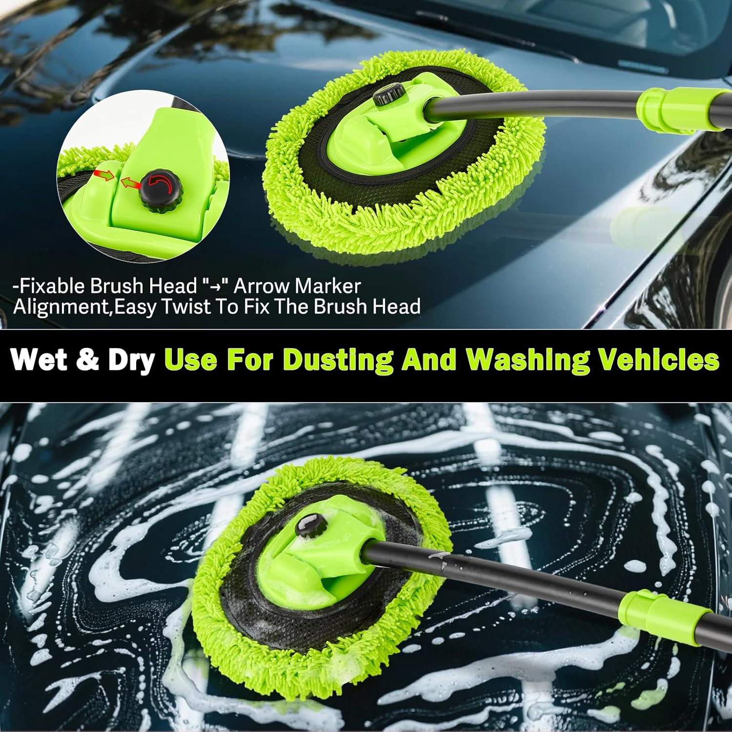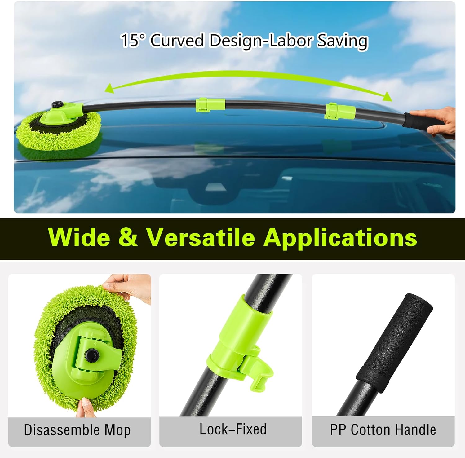 Car Wash Brush with Long Handle - 15° Curved Extendable Car Wash Mop,Soft Car Washing Brushes with Extra Microfiber Mop Head for Truck SUV Cleaning Not Hurt Paint Scratch Free