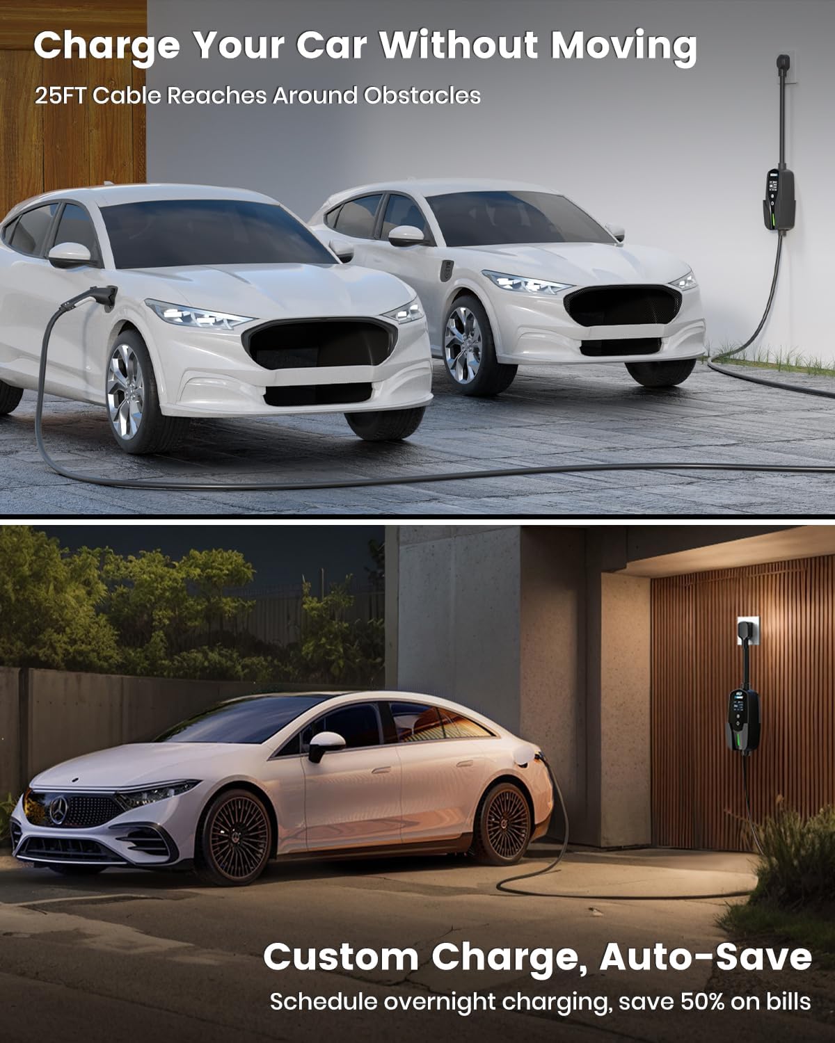 - 4x Faster Charging with 25FT Full Reach — EVDANCE EV Charger LEVEL 2 charge at 15-20 mph via existing dryer outlet. Plug-and-play with included NEMA 14-30P (240V/24A) to recharge an 83.9kWh EV like BMWi4 from 20% to 80% in 9 hours, 75% faster than standard 120V/12A outlets (38 hrs). No garage rewiring needed. The EVDANCE 25FT LEVEL 2 EV Charger cable (21.9FT charger-to-car & 3.1FT control-to-outlet) , effortlessly stretching from laundry room dryer outlets to far parking spots.