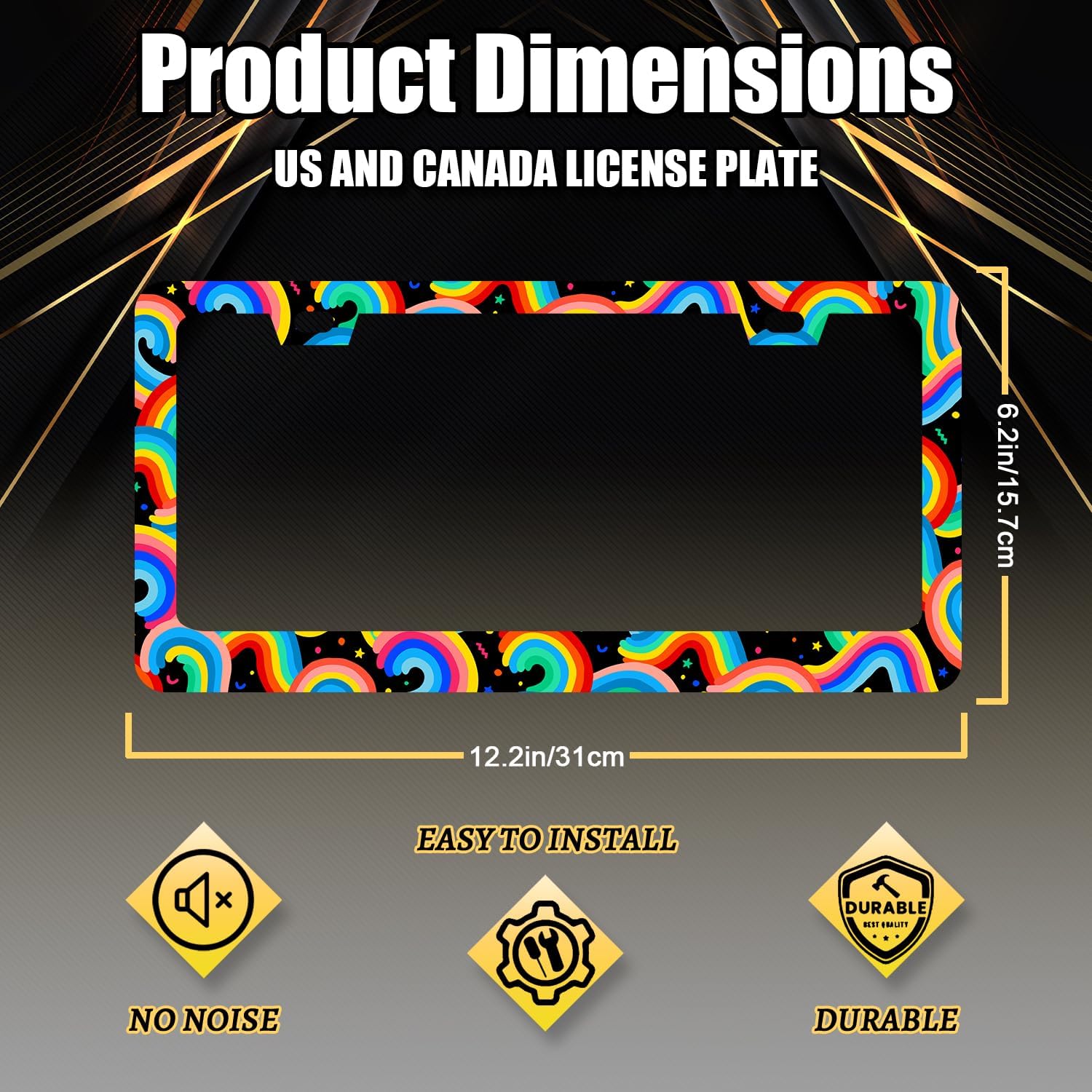 Boho Rainbow License Plate Frame Colorful License Plate Holder Stainless Steel Funny Colorful Car Accessories Decoration 6.3" X 12.3" with 2 Holes Screws