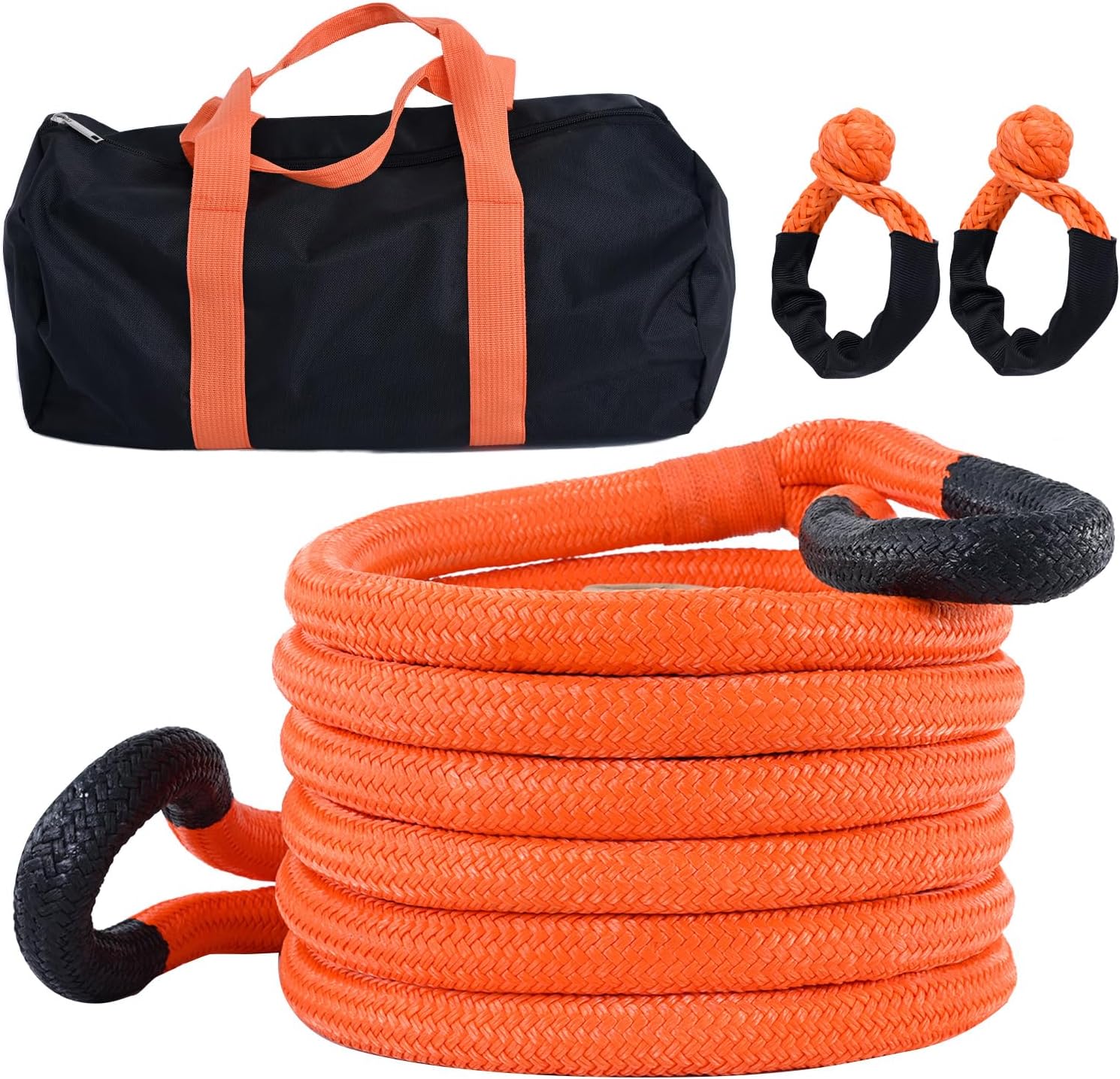Kinetic Recovery Tow Rope, 48000LBS Snatch Strap with Soft Shackles, Extreme Duty 30% Elasticity Energy Offroad Towing Straps Kit for Car Jeep Trucks SUV UTV ATV Tractor - 1" x 20ft, Orange
