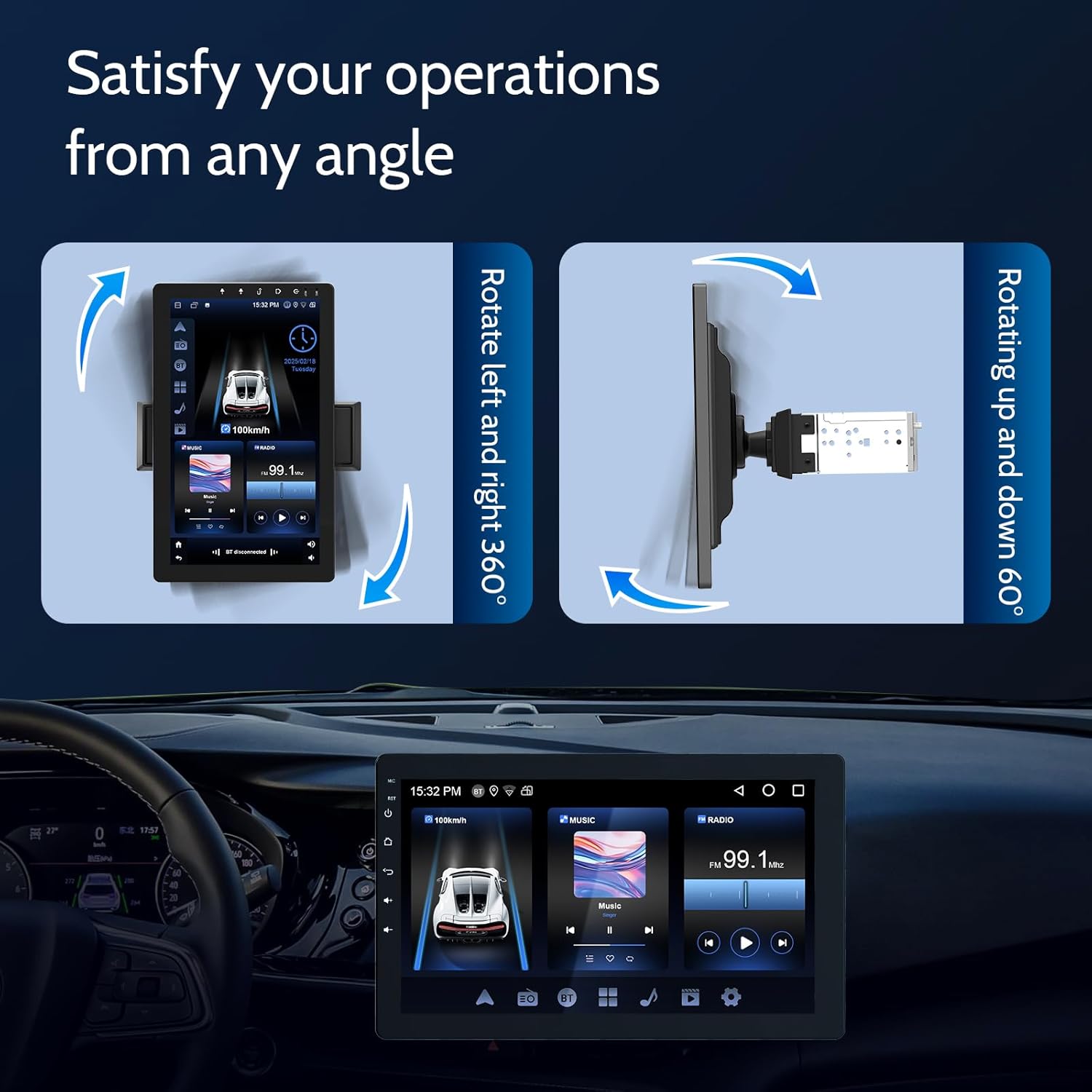 Single din Car Stereo,Rotatable Carplay Screen with 1080P Rear Camera,Wireless CarPlay & Android Auto Touch Screen,Mirror Link|Bluetooth|Music Play|AUX|FM,10.1" Wireless Single Din Car Radio