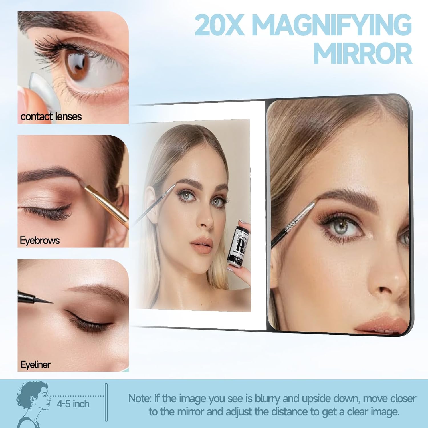 - 【Makeup Mirror With 20X magnification】 Our visor makeup mirror has a large mirror surface and a wide field of view, allowing you to view the overall effect of your makeup after applying it; not only that, we also equipped it with 20X magnifying mirror, whether you are touching up your makeup, retouching your eyebrows or retouching your eyeliner. The ultra-clear reflection ensures that every detail is clear and realistic, making it an indispensable tool for makeup enthusiasts and professionals.