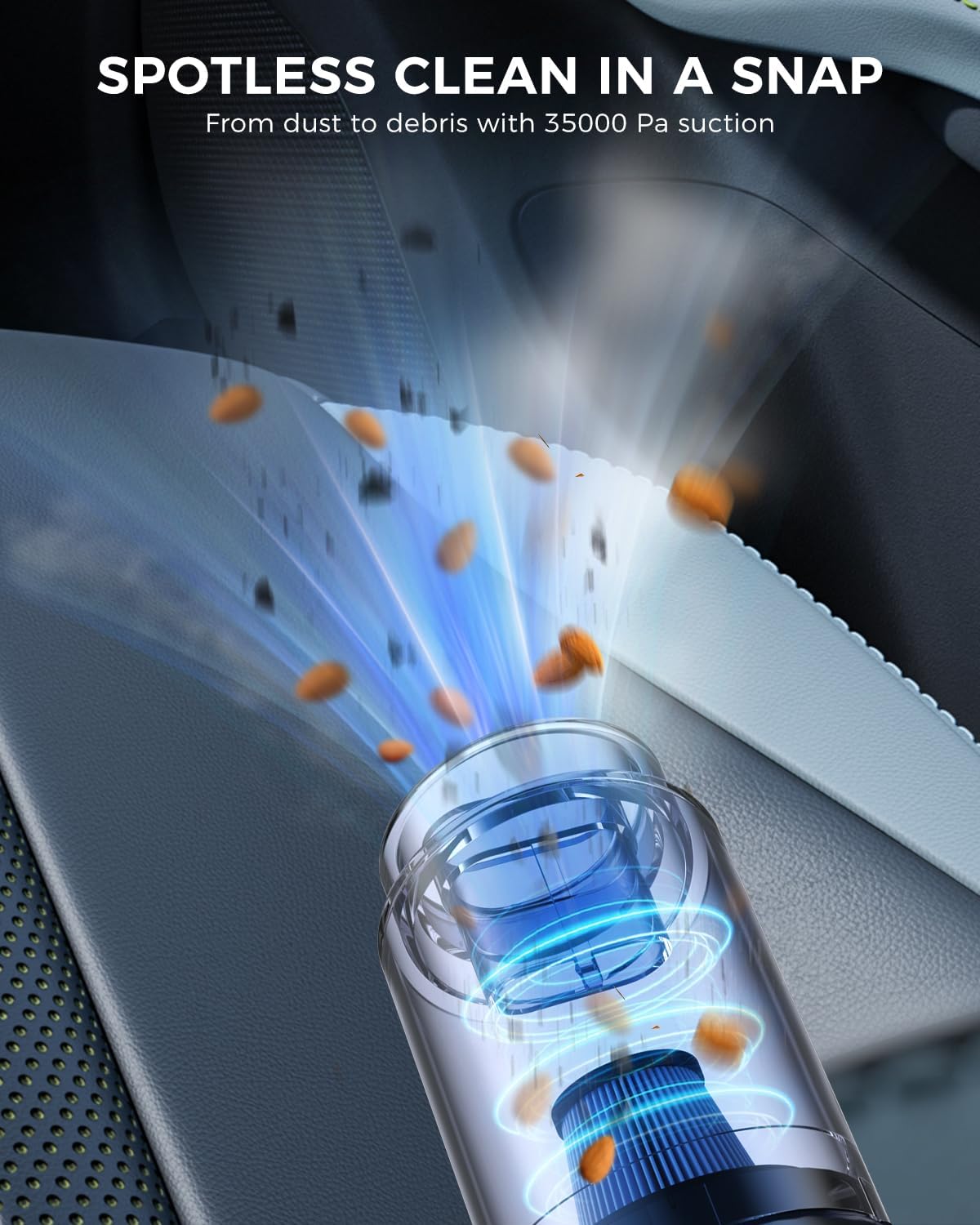 Car Vacuum Portable Cordless, 35000PA High Power Suction & Blower, Wireless Handheld Vacuum Cleaner for Car, Home, Office, Pet(Navy Black)