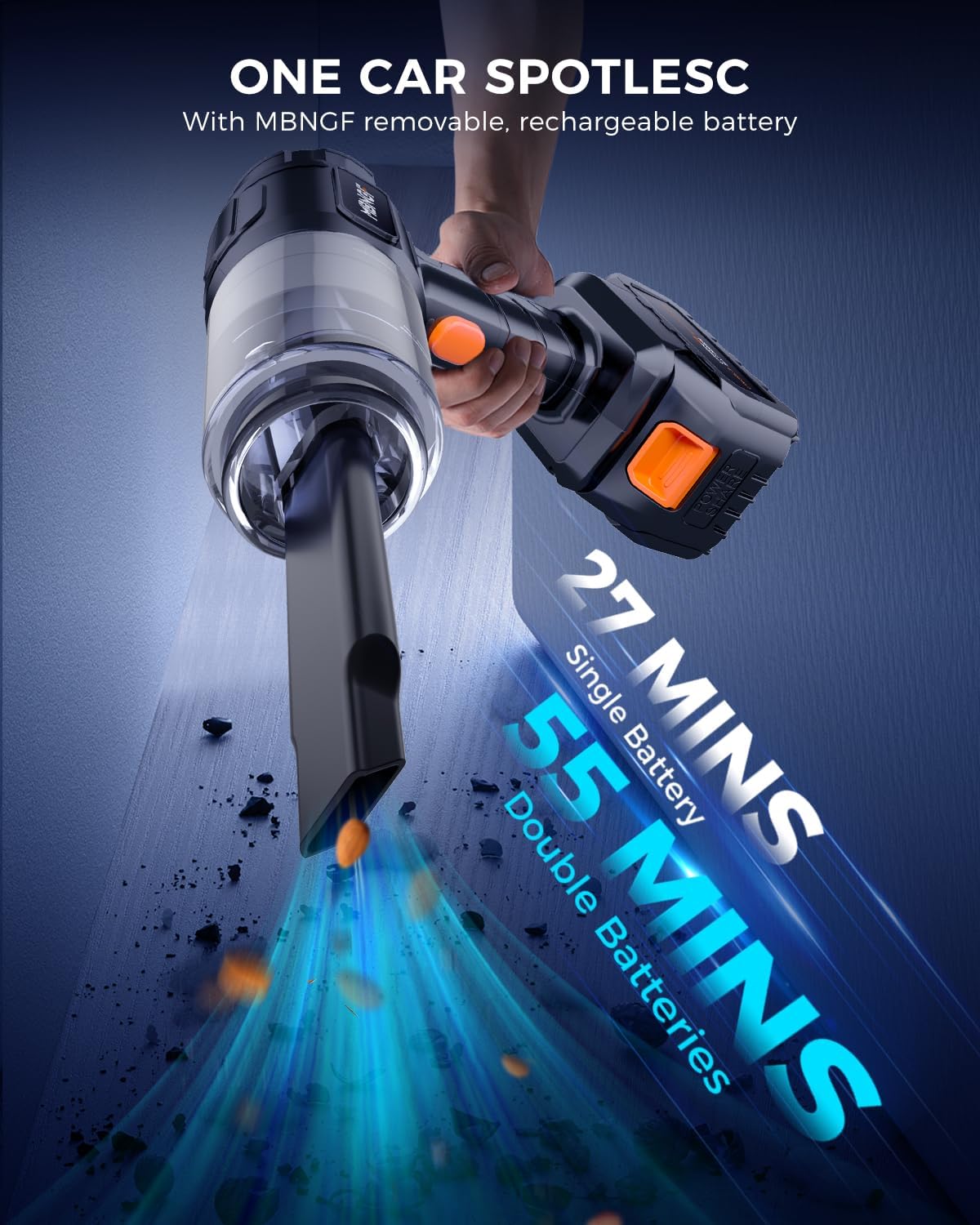 - 【35000PA High Power Suction】 Experience powerful cleaning with the MBNGF X9 ULTRA car vacuum. Its 35000PA high suction force effortlessly picks up stubborn dirt, dust, and debris, making it perfect for keeping your car interior.