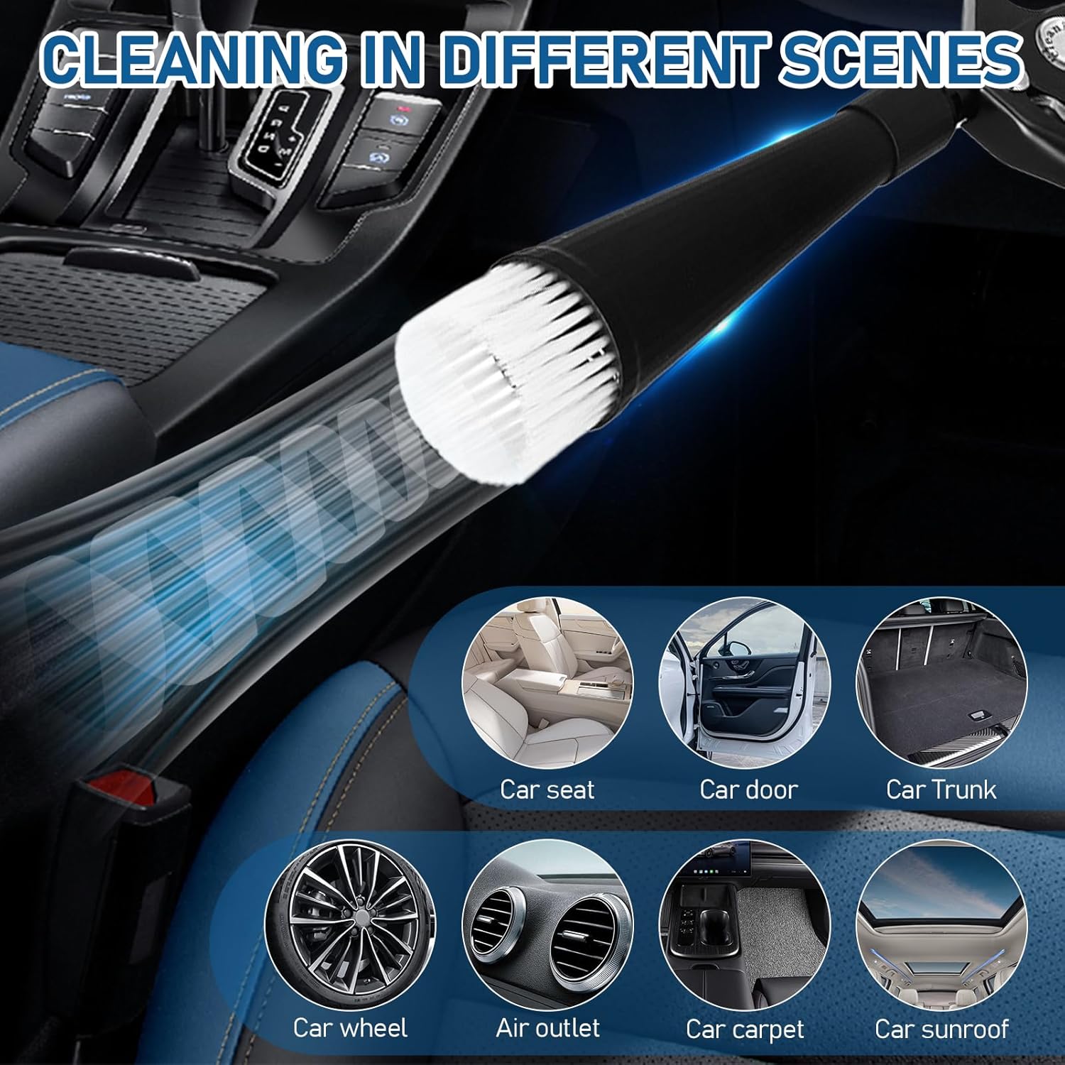 - 🚗Multi-Scene Cleaning Tool:Ideal for seats, carpets, vents, consoles, wheels—perfect for pros and DIYers.