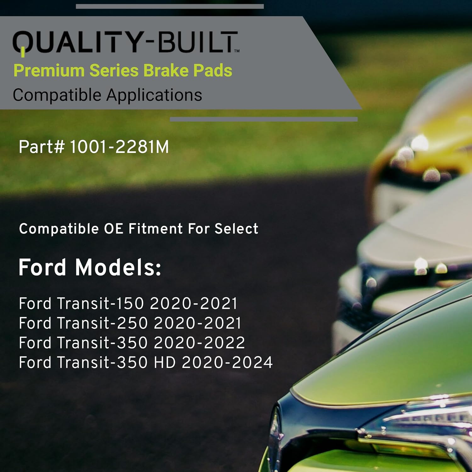 Premium Semi-Metallic Rear Brake Pads (1001-2281M) Compatible with Ford Transit-150 2020-2021, Ford Transit-250 2020-2021, Ford Transit-350 2020-2022, Ford Transit-350 HD 2020-2024