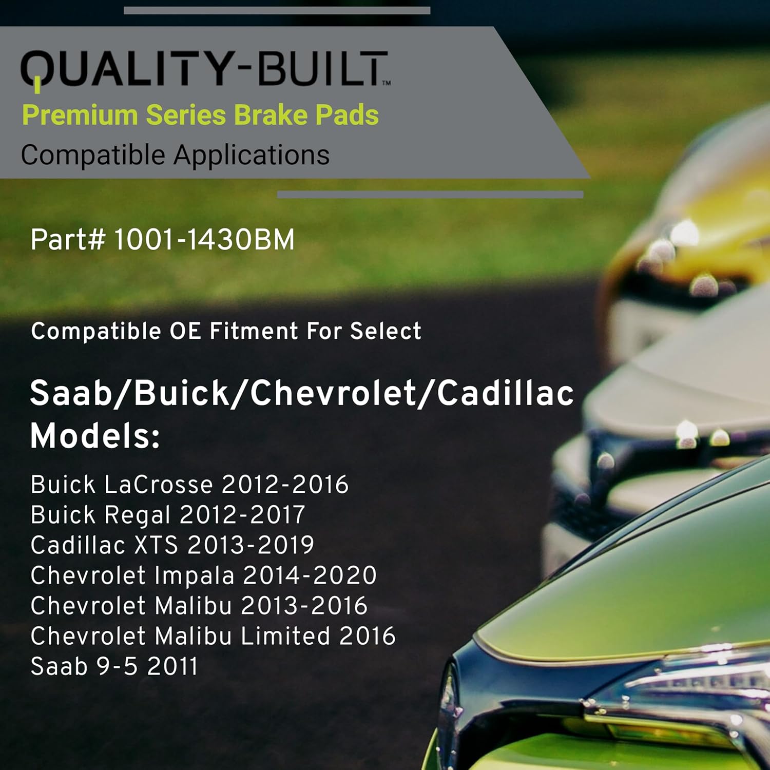 Premium Semi-Metallic Rear Brake Pads (1001-1430BM) Compatible with 2011-2020 Buick/Cadillac/Chevrolet/Saab (9-5/Impala/LaCrosse/Malibu/Malibu Limited/Regal/XTS)