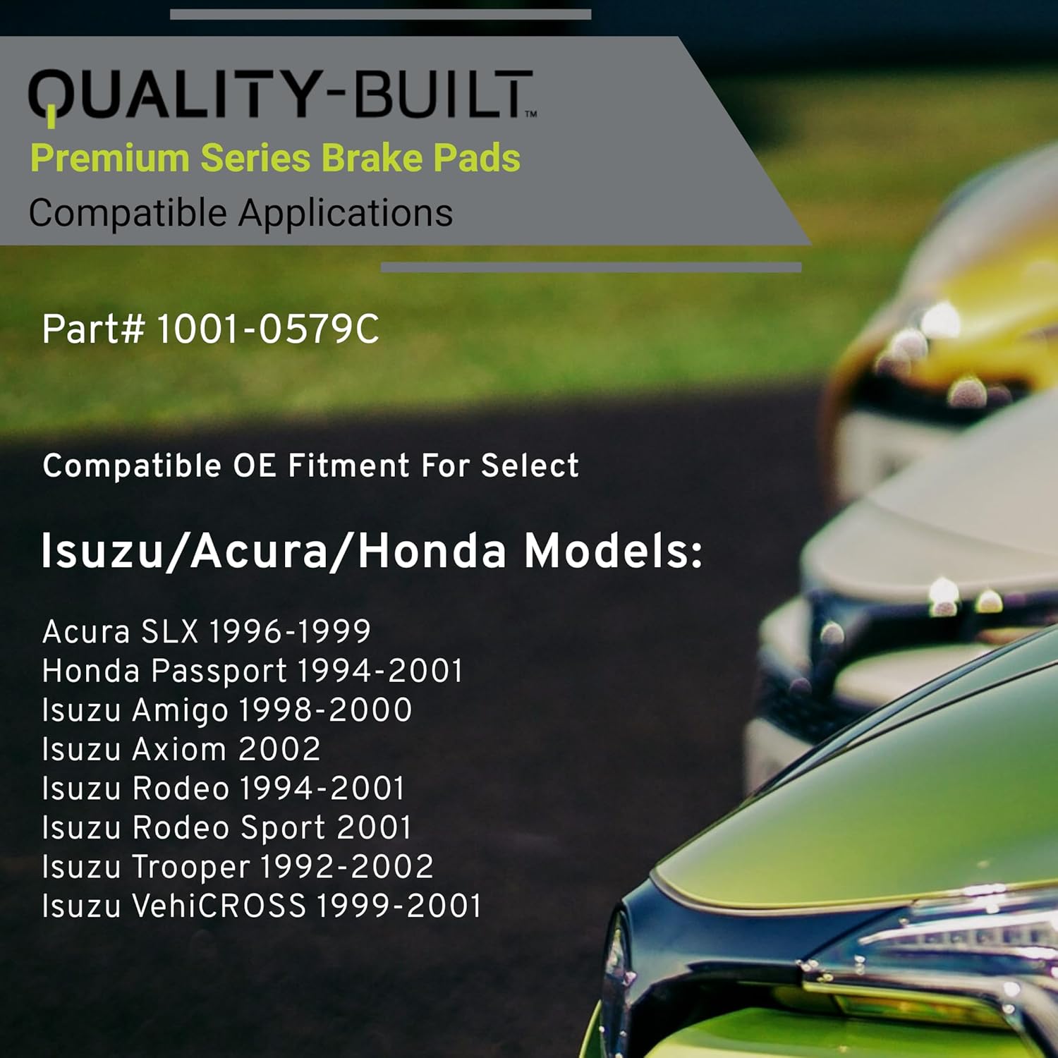 Premium Ceramic Front Brake Pads (1001-0579C) Compatible with 1992-2002 Acura/Honda/Isuzu (Amigo/Axiom/Passport/Rodeo/Rodeo Sport/SLX/Trooper/VehiCROSS)