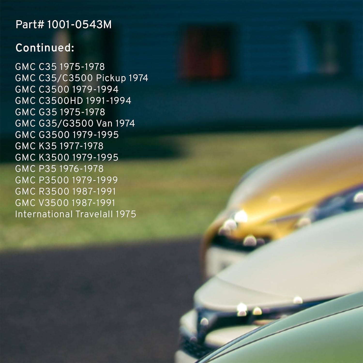 - FITMENT LIST: Select Models 1971-2002 DODGE/ CHEVROLET/ GMC/ INTERNATIONAL/ C3500/ PICKUP;G35/ G3500/ VAN;C3500HD (1001-0543M) Verify Fitment using AmazonConfirmedFit tool.
