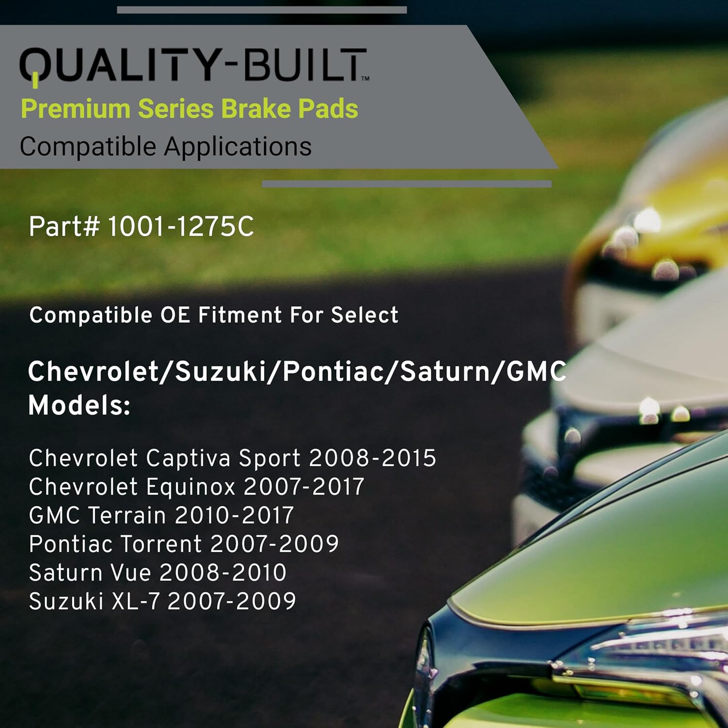 Premium Ceramic Rear Brake Pads (1001-1275C) Compatible with 2007-2017 Chevrolet/GMC/Pontiac/Saturn/Suzuki (Captiva Sport/Equinox/Terrain/Torrent/Vue/XL-7)