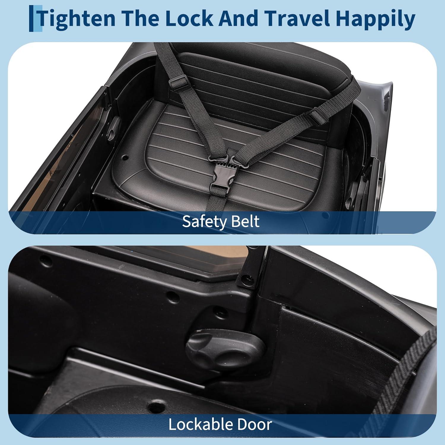 12V Ride on Car Licensed Shelby GT350, Battery Powered Ride On Toy for Toddlers with Remote Control, Electric Car for Kids, Bluetooth, Shock Absorbers, Safety Belt, 3 Speeds, LED Lights, Music, Black