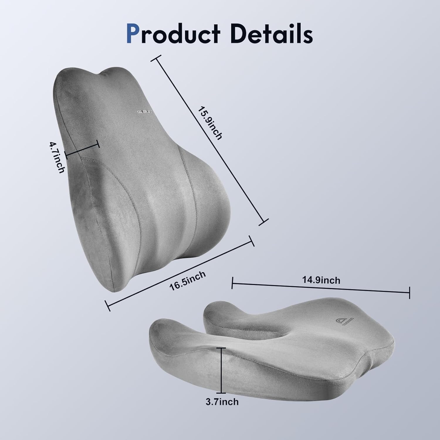 Coverado Memory Foam Car Seat Cushion and Lumbar Support Pillow for Car, Ergonomic Office Chair Cushion for Lower Back Pain Relief, Breathable & Non-Slip for Car, Home, and Office Use, Gray