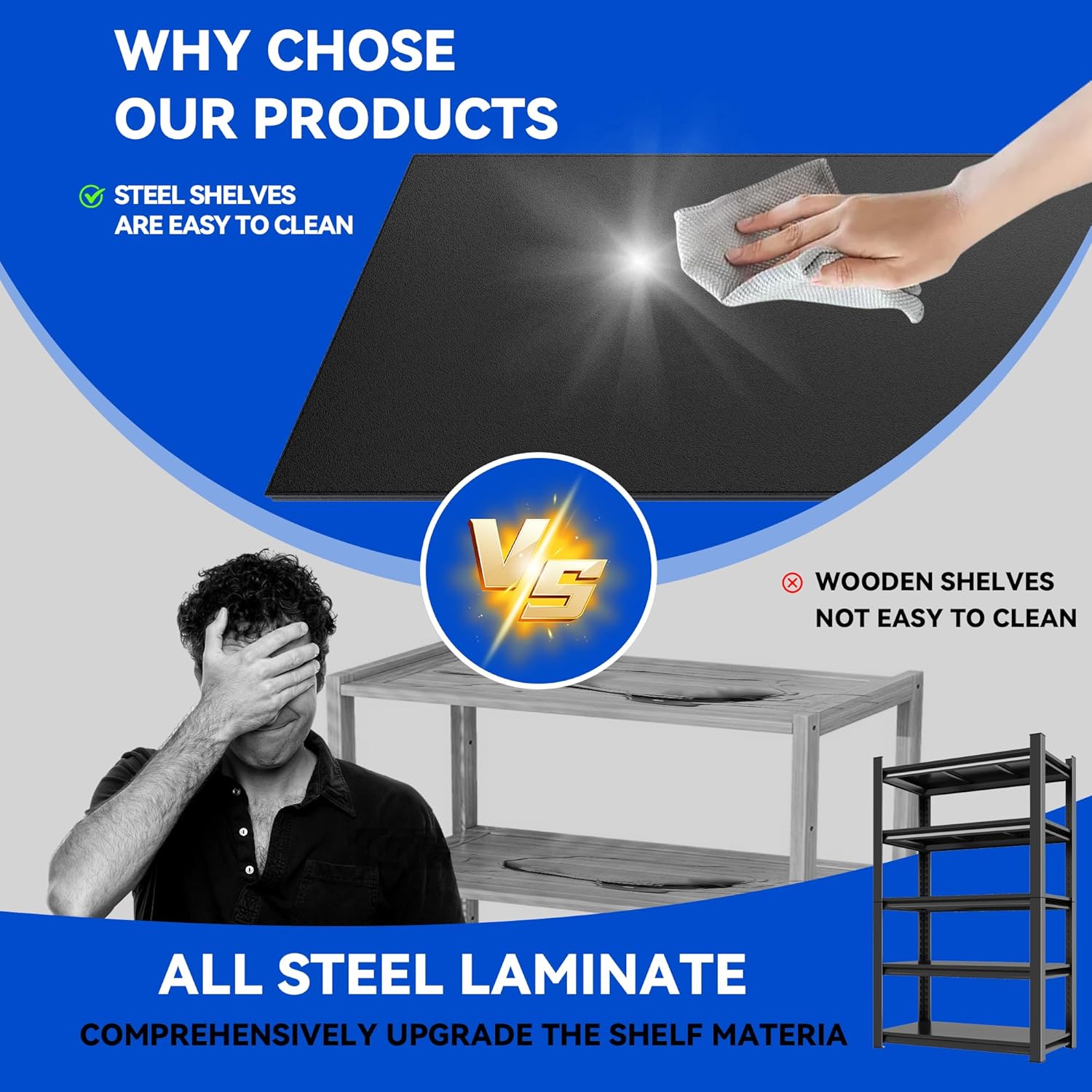 - 【HIGH QUALITY MATERIAL GUARANTEE】 The shelves are made of high-quality metal with powder coated surface, which has excellent anti-rust performance. The specially treated rust-resistant coating allows the shelf to remain shiny and new in humid environments. This moisture- and rust-resistant, scratch-resistant metal shelf will maintain its superior durability and reliability for years to come, and all you need to do is wipe it down with a dry or damp cloth to make it look brand new.