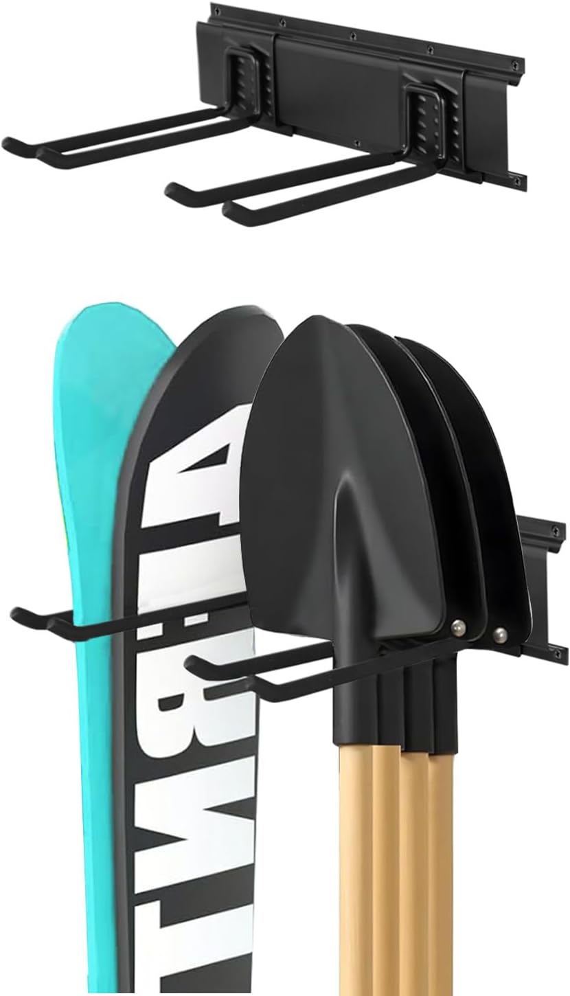 - ADJUSTABLE 16-INCH MODULAR DESIGN:Featuring a 16-inch wall-mounted frame with one rail and two versatile hooks, this organizer offers fully customizable storage. Hooks slide freely on tracks to fit tools of all sizes—from garden hoses to ski gear—maximizing wall space for easy accessibility.