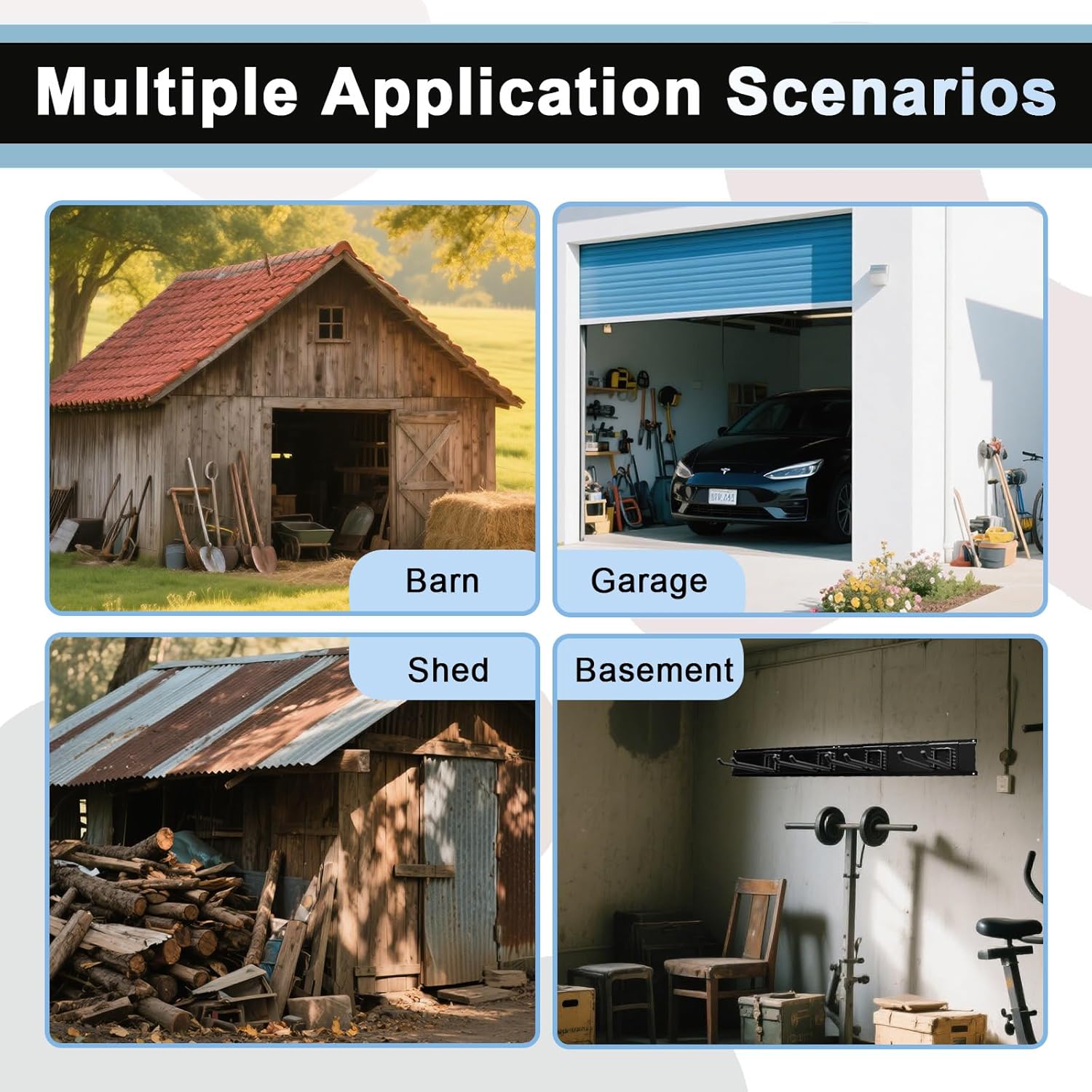 - VERSATILE STORAGE FOR EVERY SPACE:More than just a garage solution, this organizer tackles clutter in gardens, basements, sheds, and utility rooms. Store lawn tools, rakes, extension cords, sports equipment, and household items like folding chairs to transform chaotic spaces into tidy, efficient areas.