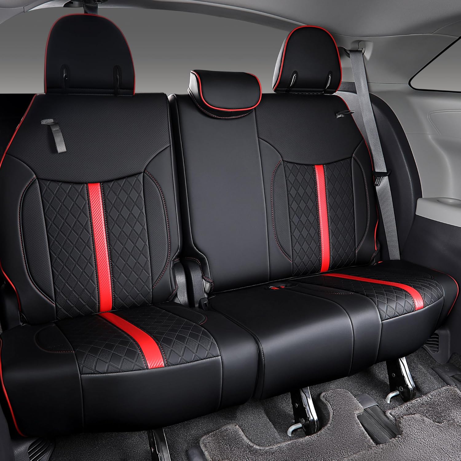 Custom Fit Sienna Seat Covers for Toyota Sienna LE,XLE 2021-2025 3-Row Accessories Full Coverage Waterproof Leather Car Seat Covers Full Set (Black with red, 8-Seat)