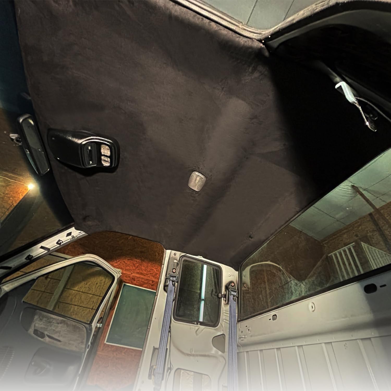 - Surface: Suede Headliner Fabric with Foam Backing Content : 1/9"(3mm) High-elastic Polyurethane Foam Material. (To determine the size you need, please measure your vehicle headliner from front to back, then add 6 inches.)Our black car suede headliner fabric provides a soft, luxurious feel, enhanced durability, and excellent noise insulation. Crafted from high-quality synthetic suede, it meets the demands of both automotive and home interior repairs.