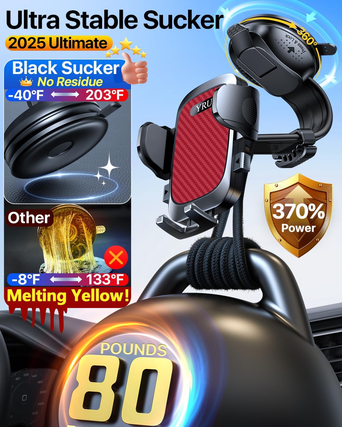 - 2025 Ultimate & High-End Car Holder, Trusted by 30,000+ Users: YRU 2025 upgraded car phone holder with 4 years of R&D passed 30,000+ users driving 900,000+ miles test, is a 3A-Grade reliable car mount, stable & durable. Got safely certified