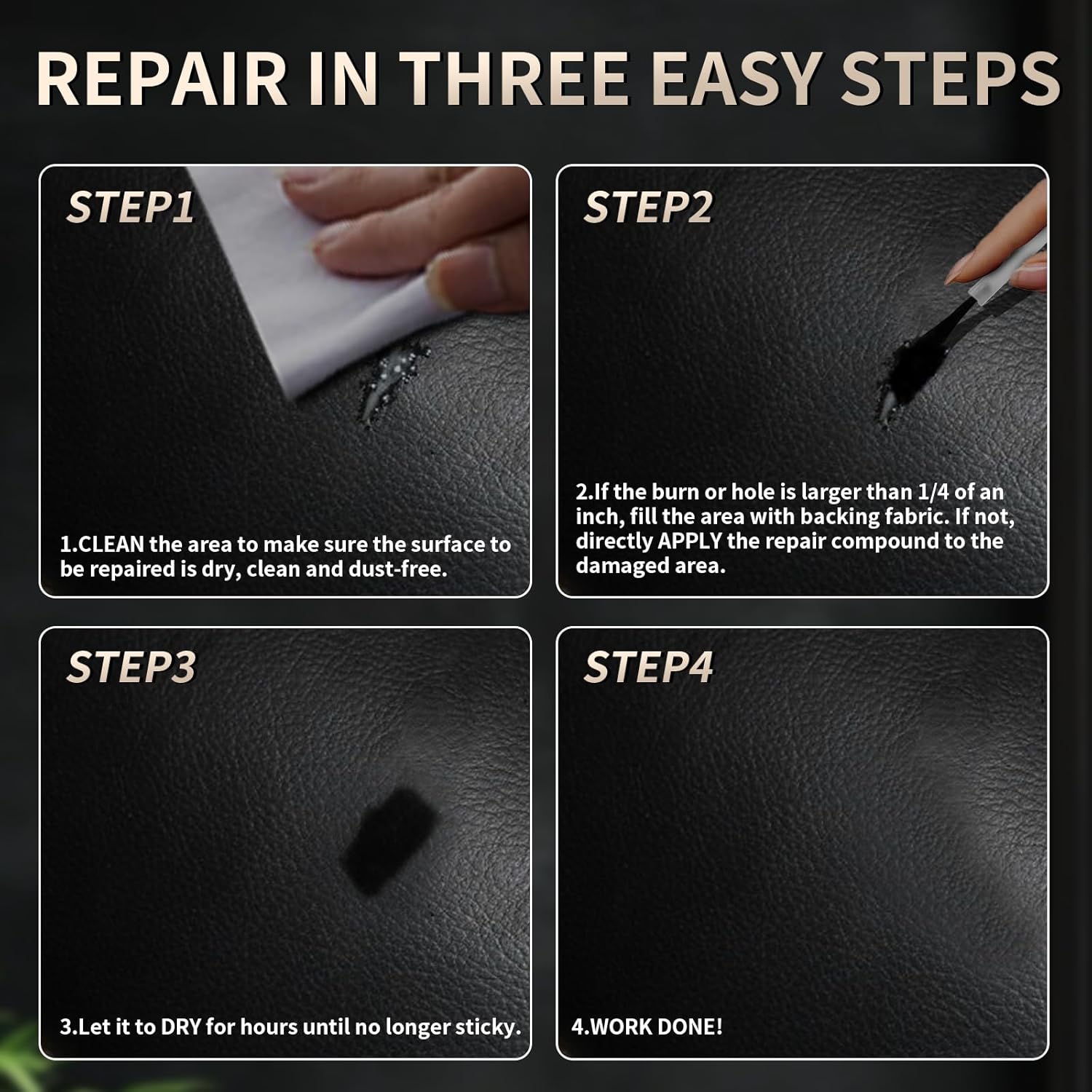 - 【Wide Applications】Perfect for repairing and enhancing leather products such as car seats, sofas, chairs, purses, shoes, and belts. This kit is ideal for bringing worn leather back to life, restoring its appearance, and making it look stylish and new again.