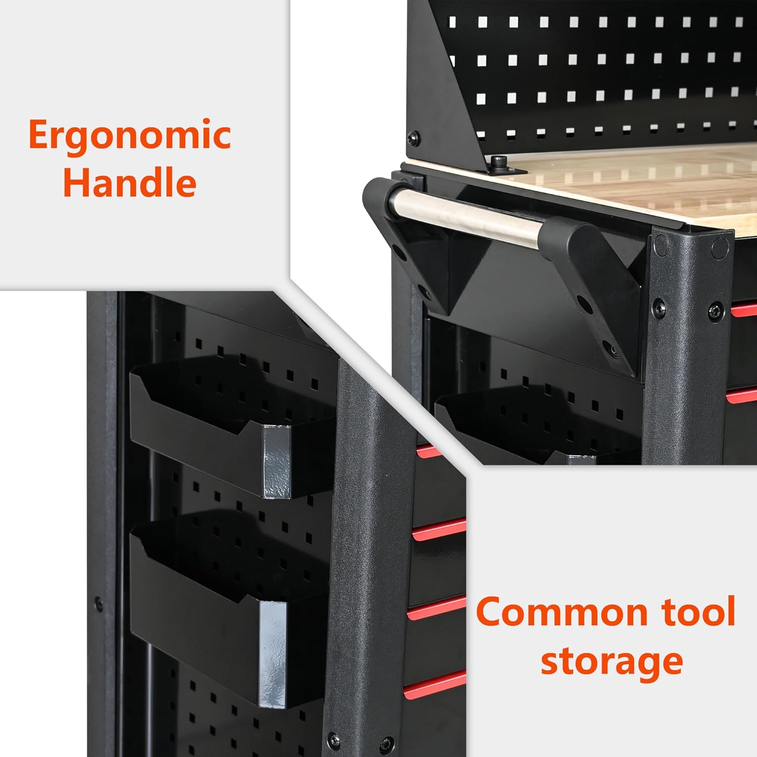 - 【Heavy-Duty Workshop Versatility】 Engineered for demanding environments, this mobile workbench serves mechanics, carpenters, and DIYers. Organize socket sets in deep drawers while mounting tools onto the thick top. Use in garages, auto shops, or home workshops – durable enough for daily professional use yet sleek for residential spaces