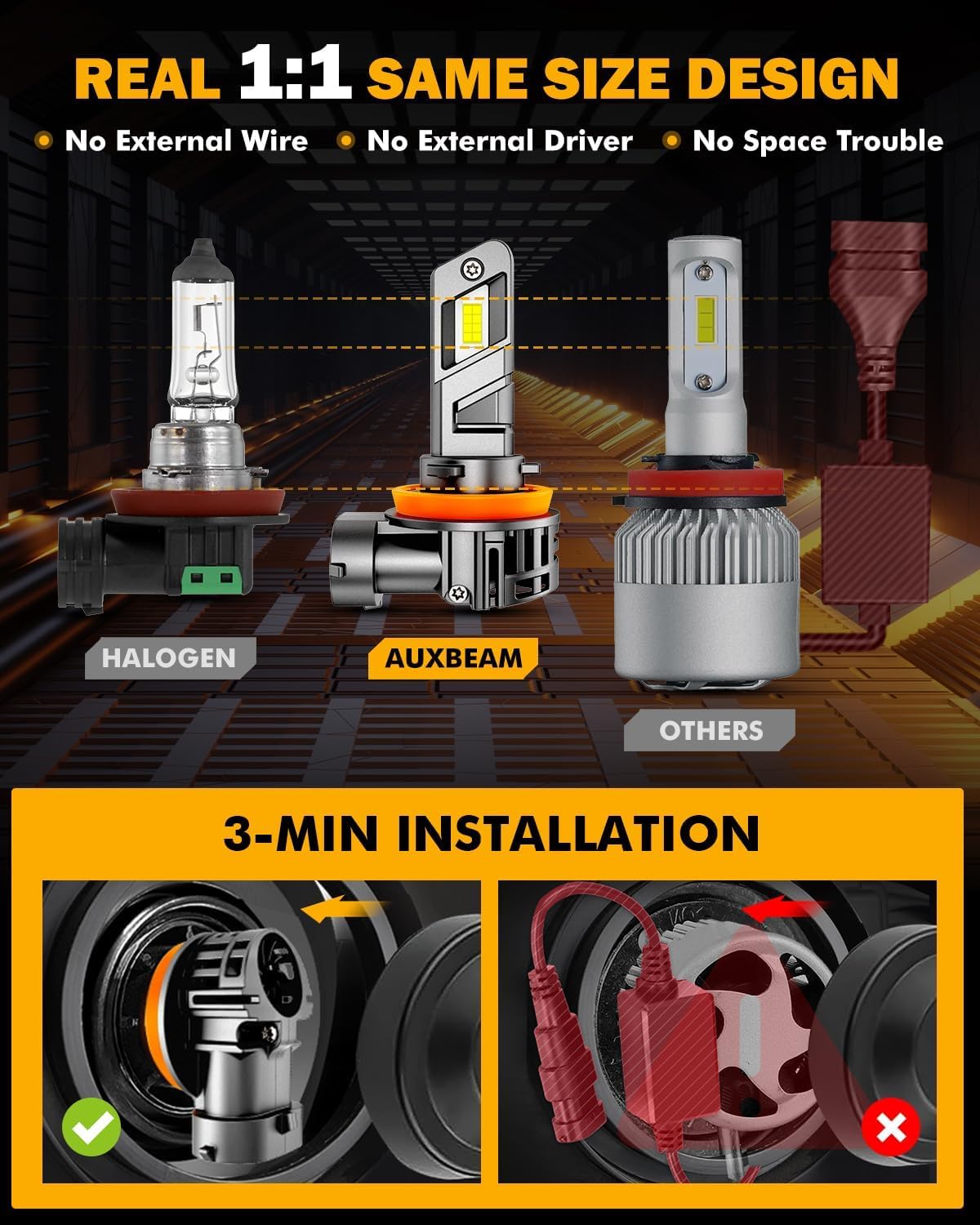 - NOTE: Not fit for DRL/Daytime Running Light. If any issues happen during installation or use, please message auxbeam for free help until the problem is solved.