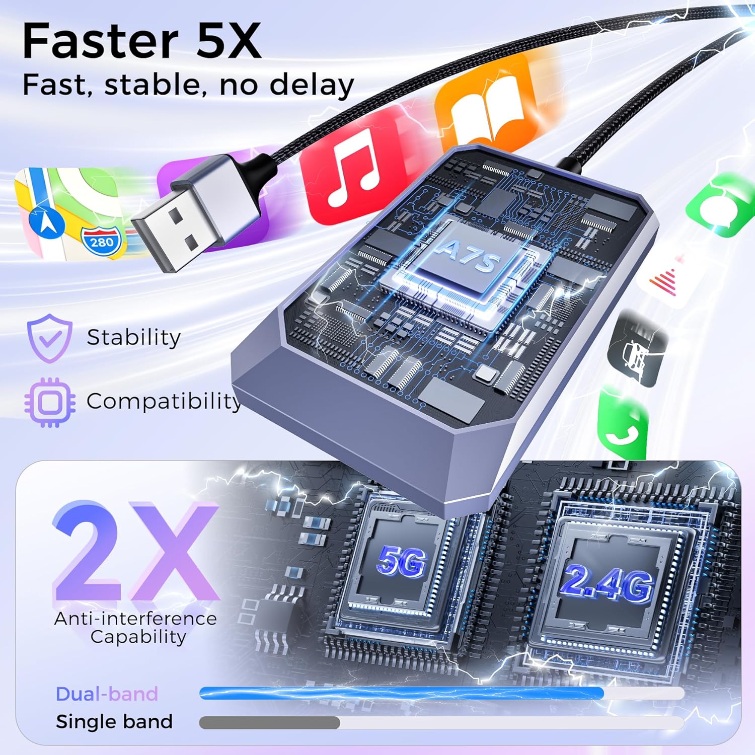 - Wireless CarPlay Upgrade: Instantly convert your vehicleโs OEM wired CarPlay to wireless. Enjoy full CarPlay features like navigation, music, voice assistant, calls, and messages. Keeps original control logic while reducing cable clutter for a cleaner interior