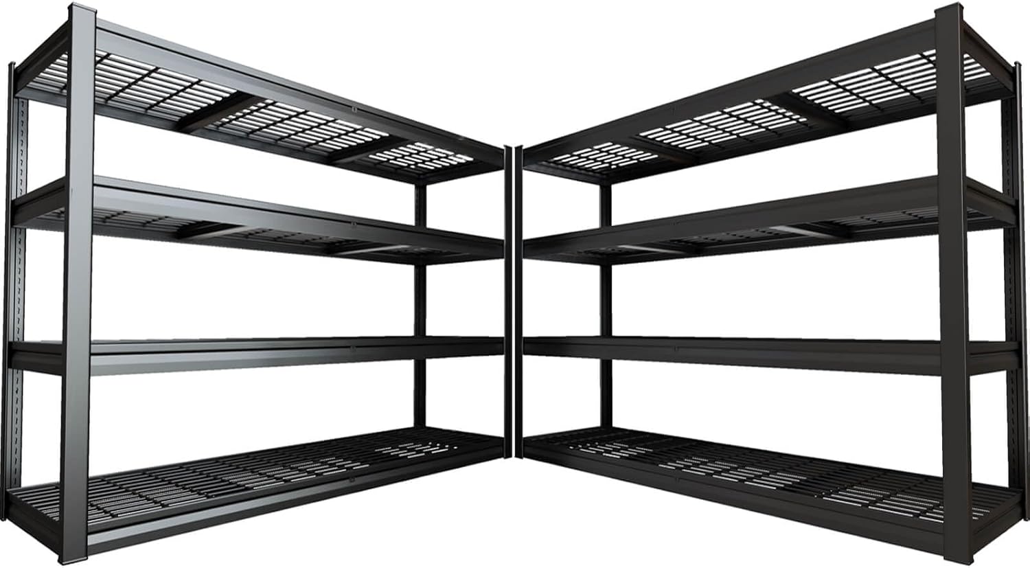- One-piece design â No assembly hassles with separate connectors! Each steel post is precision-welded from thick-gauge metal for ultimate stability, handling everything from household storage to industrial warehouse loads with ease.This garage shelving is specifically stable don't panic, long lasting features.