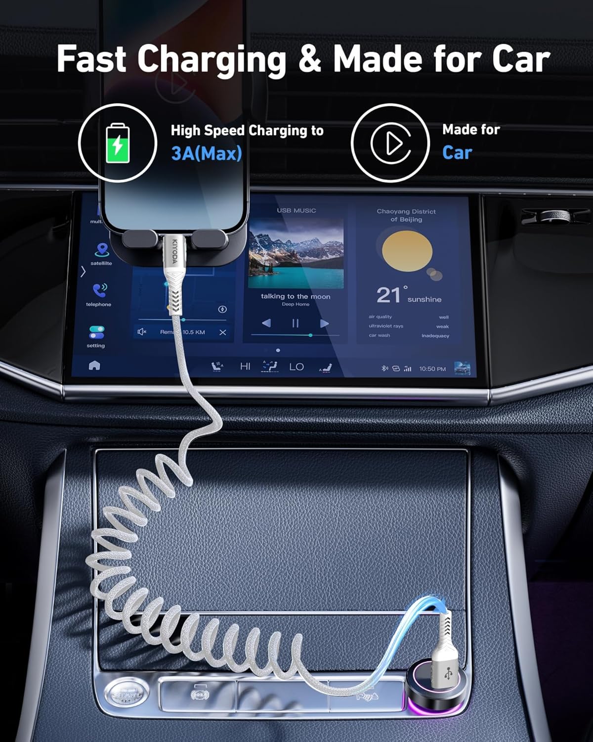 - Special Feature : Braided, Coiled/Retractable, USB C Fast Charging, Made for Car