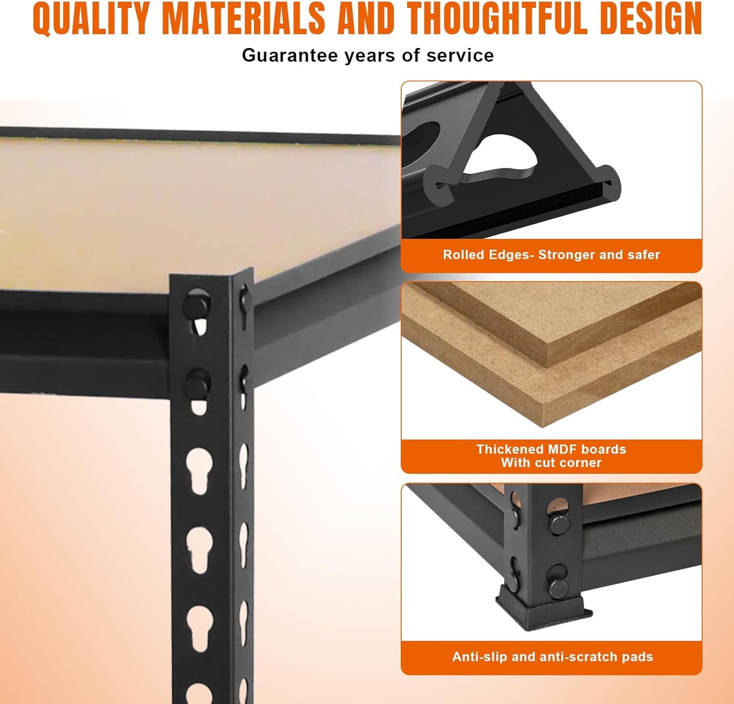 - Safe & Sturdy Rolled Edge Design: Say goodbye to the low quality and easy scratching of single layer post shelves. The boards cut corners and rolled edge design of the metal column is not only thicker and better quality of the column, but also protect your hands from scratches. This thoughtful design makes this garage shelf the best choice whether you use it for yourself or give it to a friend!
