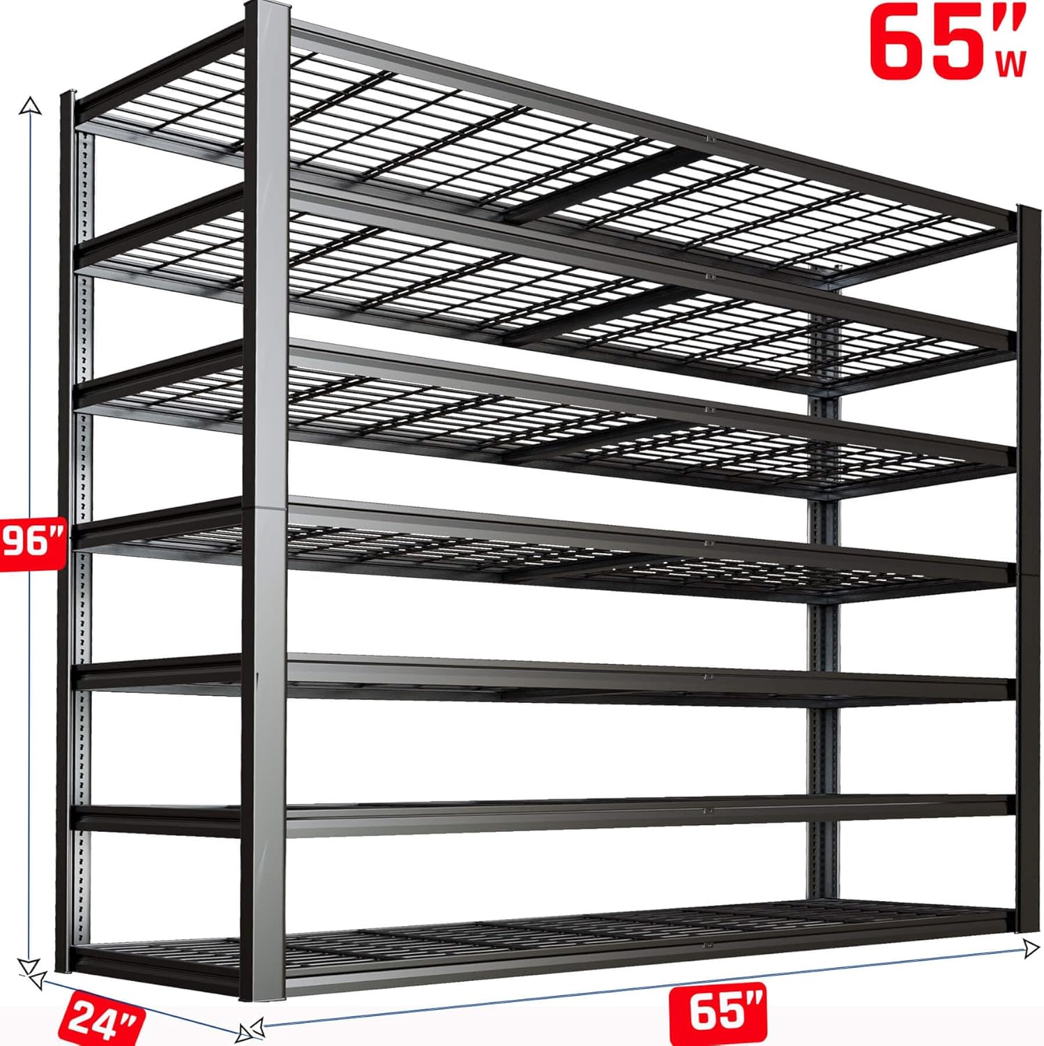 7 Tier Garage Shelving Heavy Duty,65" W Garage Shelves, 65" W x 96" H x 24" D Adjustable Storage Shelving Unit, Commercial Metal Shelves for Warehouse, Basement