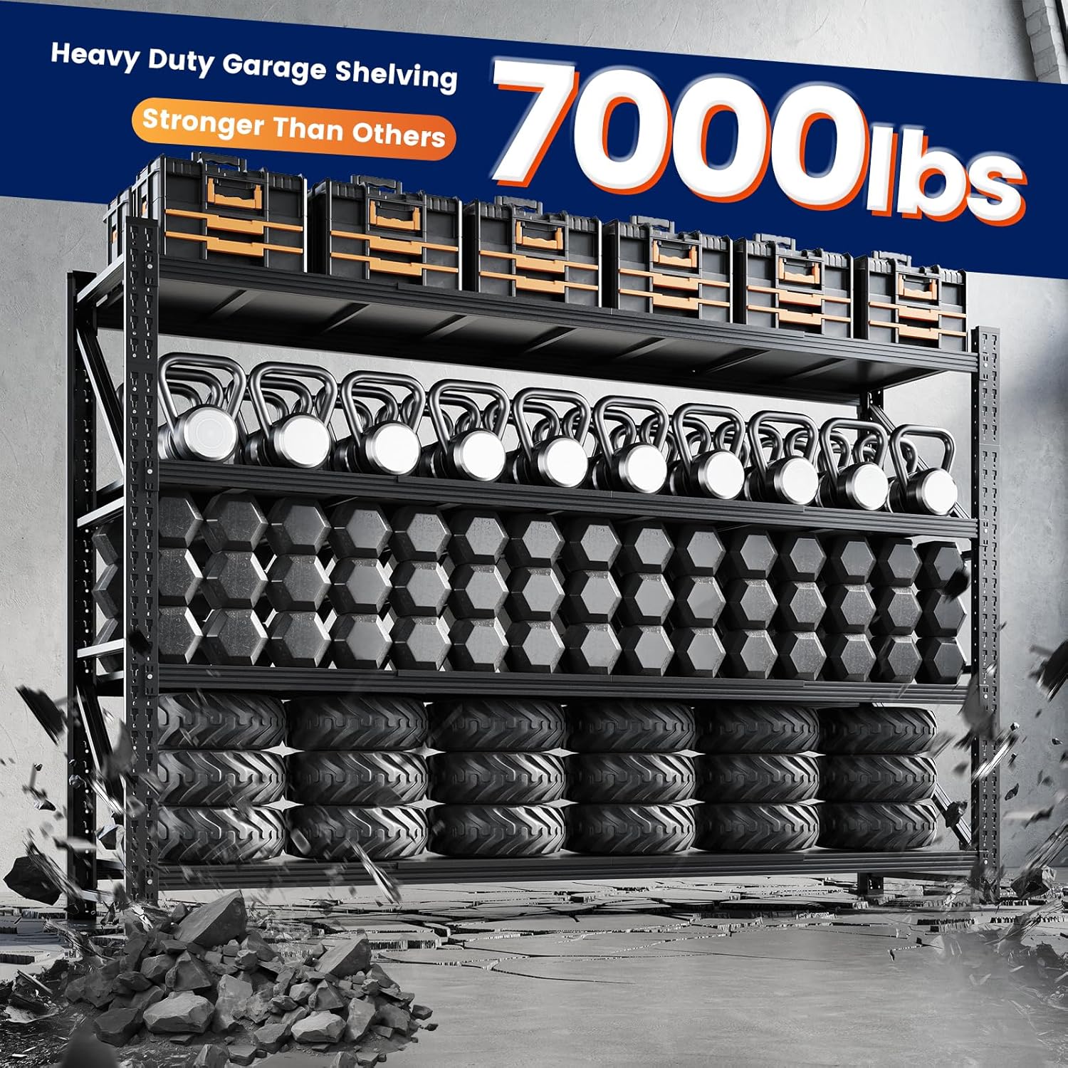 - 【Sturdy Design】The garage shlelving units reinforced diagonal braces designs,its could evenly distribute the weight,features reinforcing ribs for added strength,ensuring strong stability and resistance to deformation.