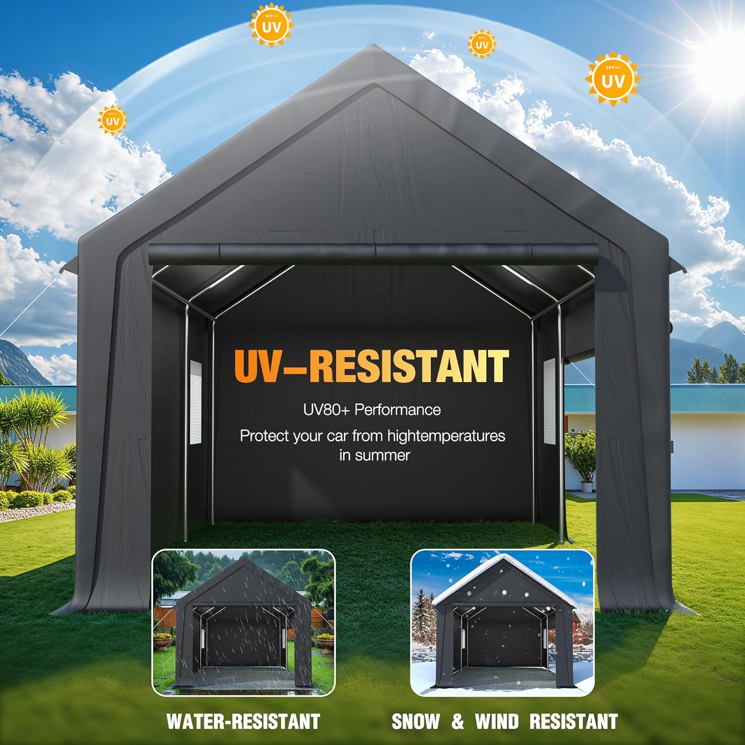 - 【Large Capacity Carport】Carport size is 144'“L x 235”'W x 118.9''H, the large portable garage provides plenty of space for you to park your car or other vehicles, and you can even use it as a temporary storage, it is versatile, lightweight and durable, perfect for vehicle storage, outdoor activities, exhibitions, weddings and other various occasions.