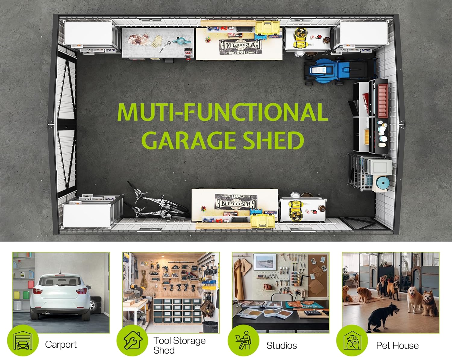 - Recommended Uses For Product : Carport for for Truck, Car, Garbage Can, Tool