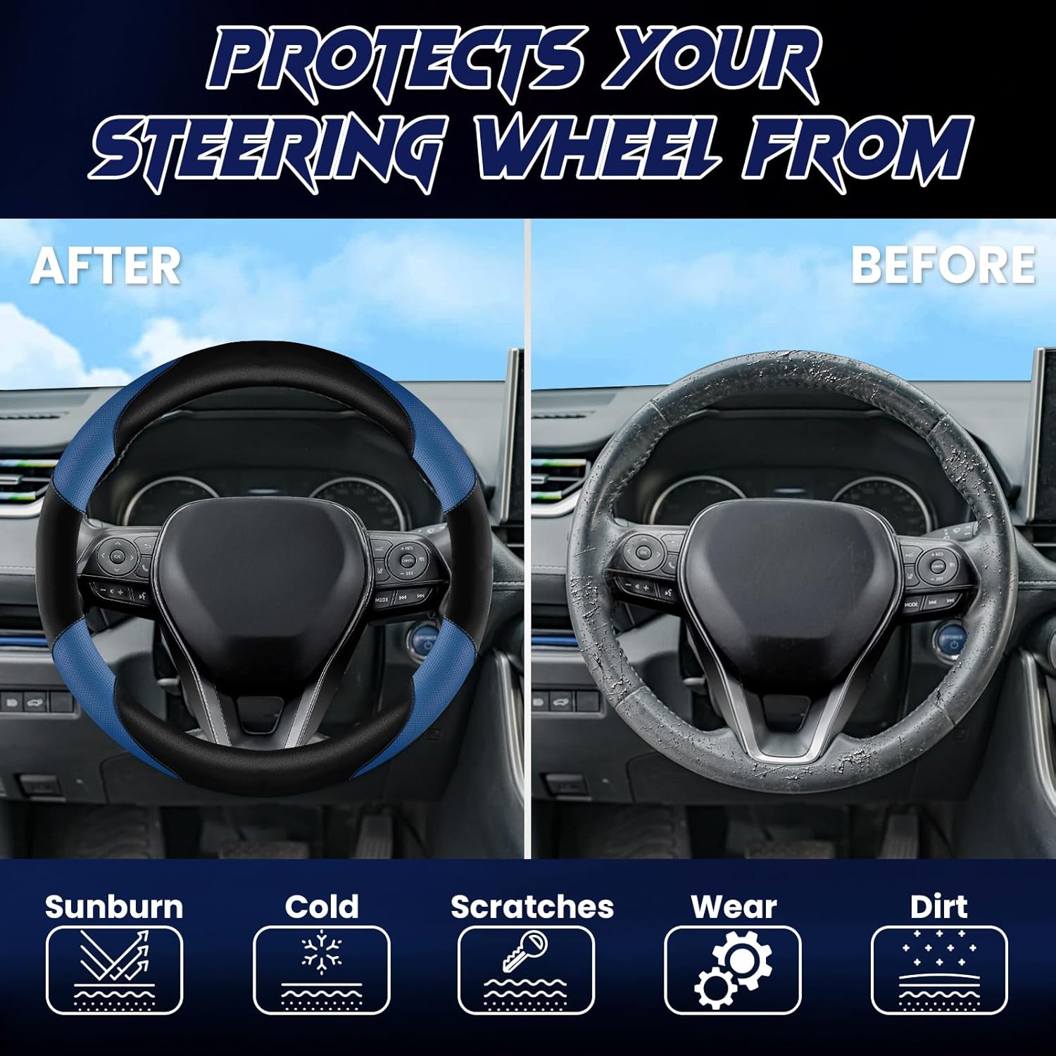 - ADD A PROTECTIVE LAYER TO YOUR STEERING WHEEL:Shield your steering wheel with UV-blocking technology, scratch-resistant surface, and wear reduction—all while maintaining buttery-soft tactile comfort for smooth driving control.