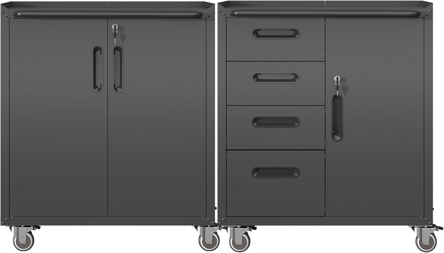 Metal Tool Cabinet,Garage Storage Cabinet System,Wall Cabinet & Locking Rolling Tool Cabinet with Doors and Adjustable Shelves,Steel Tool Cabinets for Home,Office (2 Pcs-Styled, Black)