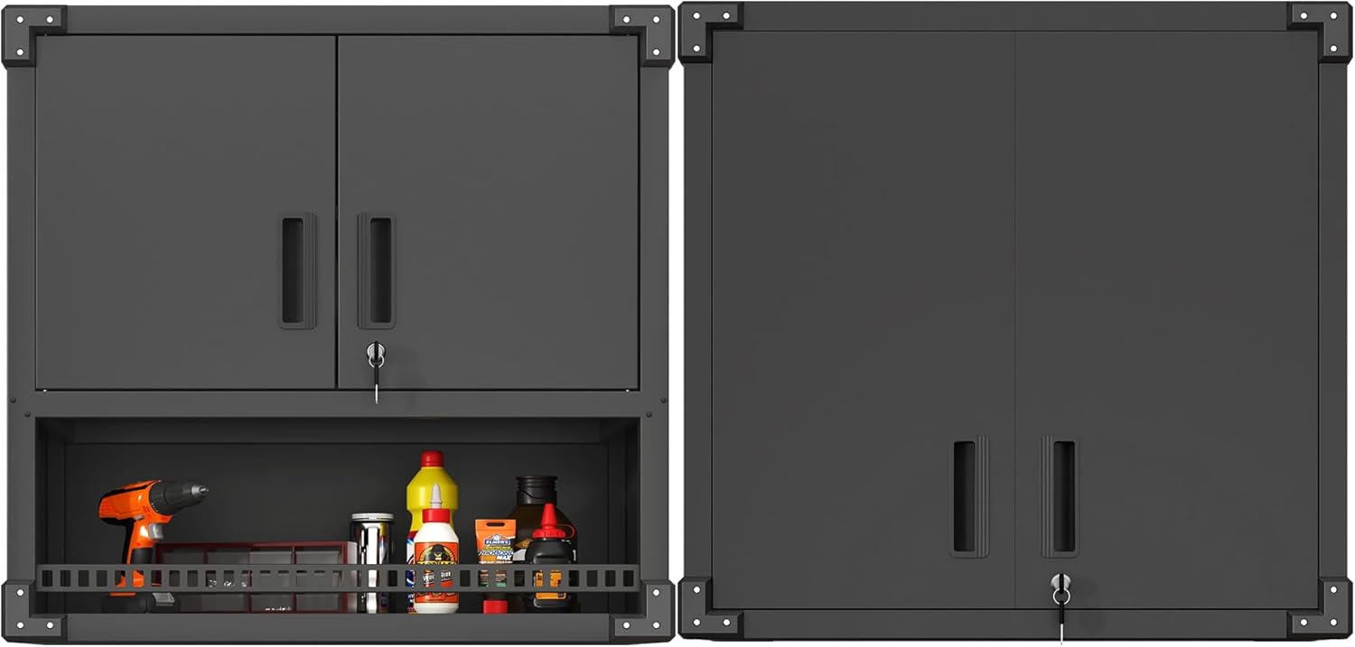 Metal Tool Cabinet,Garage Storage Cabinet System,Wall Cabinet & Locking Rolling Tool Cabinet with Doors and Adjustable Shelves,Steel Tool Cabinets for Home,Office (2 Pcs-StyleA, Black)